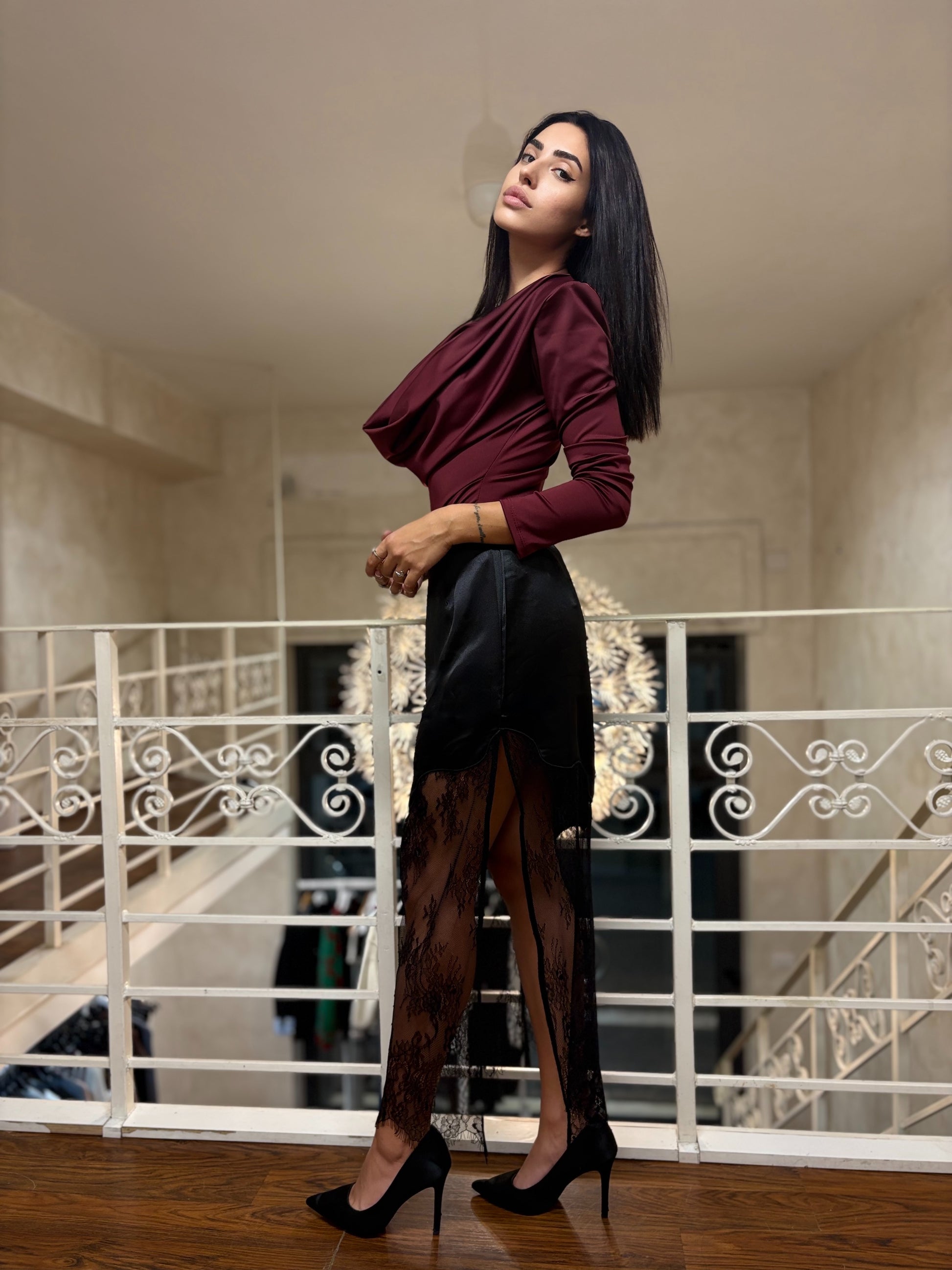 Gonna in pizzo con spacco e chiusura zip sul fianco.