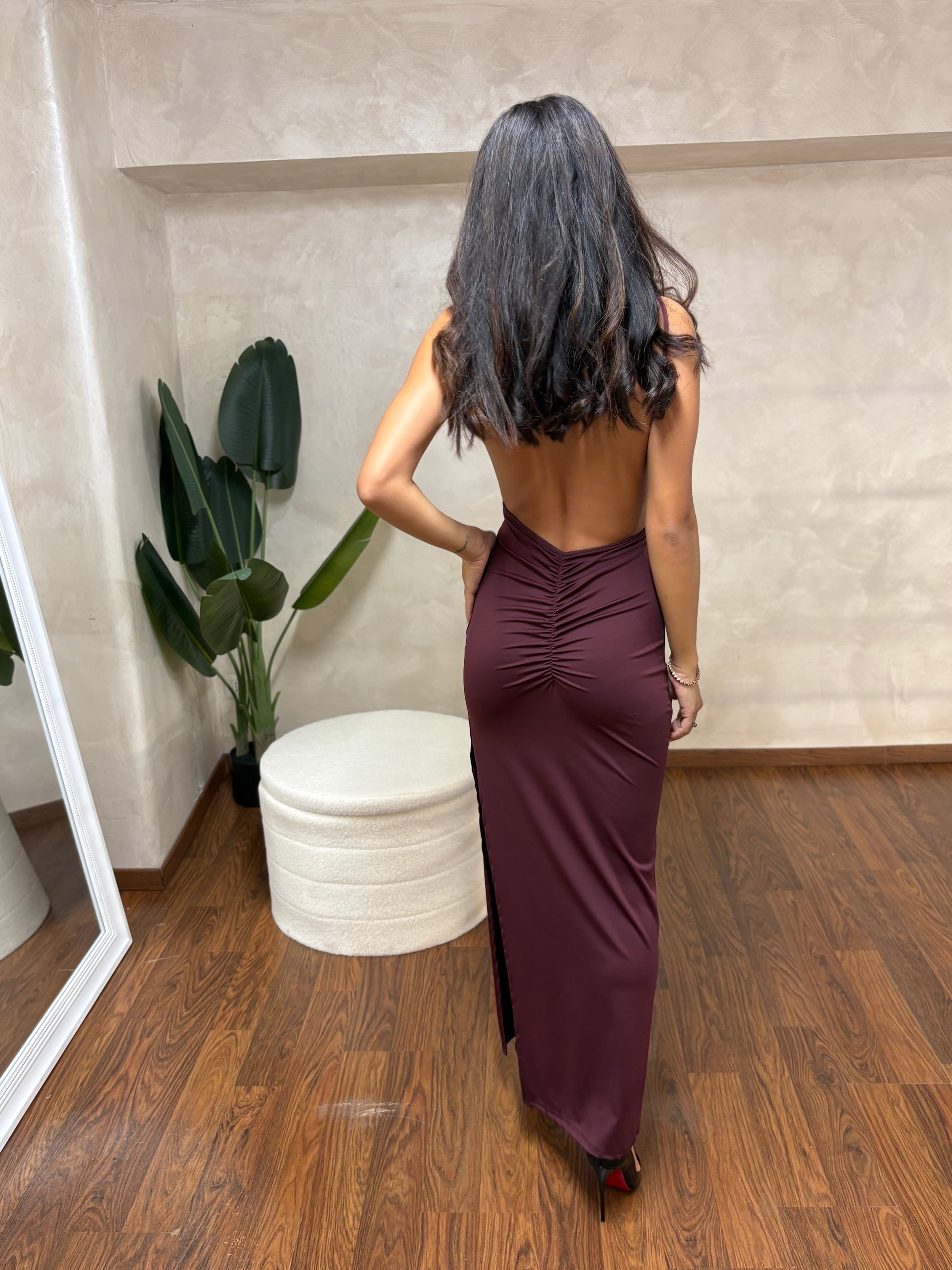 Vestito lungo, elasticizzato, coppe sul seno, schiena scoperta.